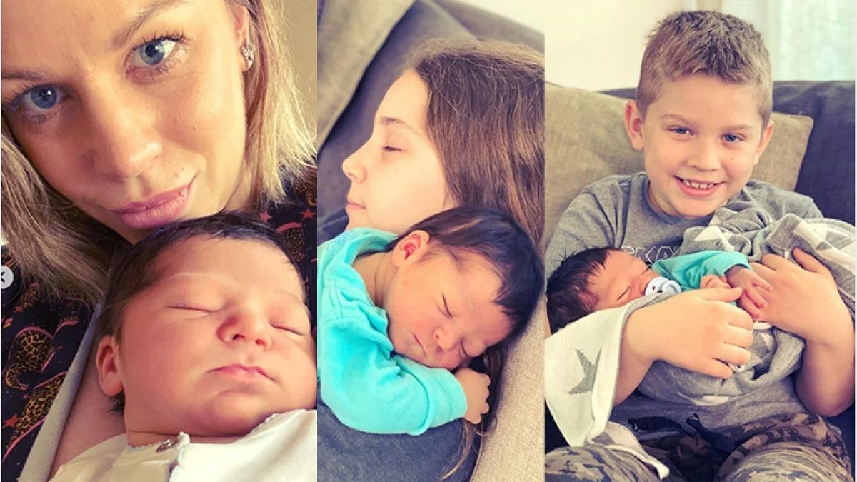 Esas fueron las palabras que utilizó Juliana Giambroni para presentar a su bebé a todos sus seguidores de Instagram. La modelo adjuntó una serie de fotos en las que se ve al recién nacido, junto a sus hermanos, y a su pareja Matías Di Chiara acompañándola en el sanatorio.