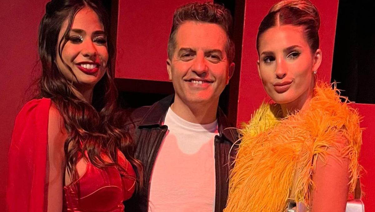 "Cazando Angelitas por la noche. Como las ven", escribió el conductor para acompañar el post en el que Daniela Celis luce un vestido rojo y Julieta Poggio un conjunto de plumas amarillas.