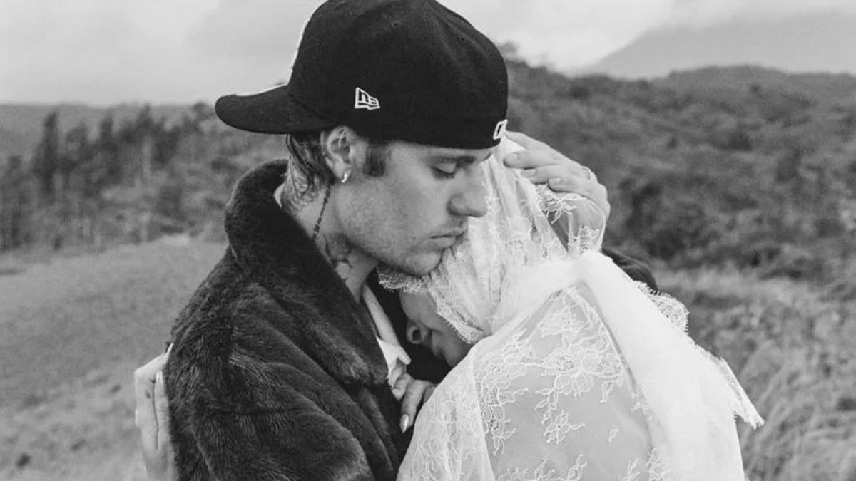 Hailey posó con un espectacular vestido de encaje blanco. Un diseño de mangas largas, corte recto en el pecho y velo incluido. A esto le sumó lentes oscuros de sol y discretos accesorios. Mientras que, Justin Bieber optó por un outfit total black y más urbano, con chaqueta y gorra.