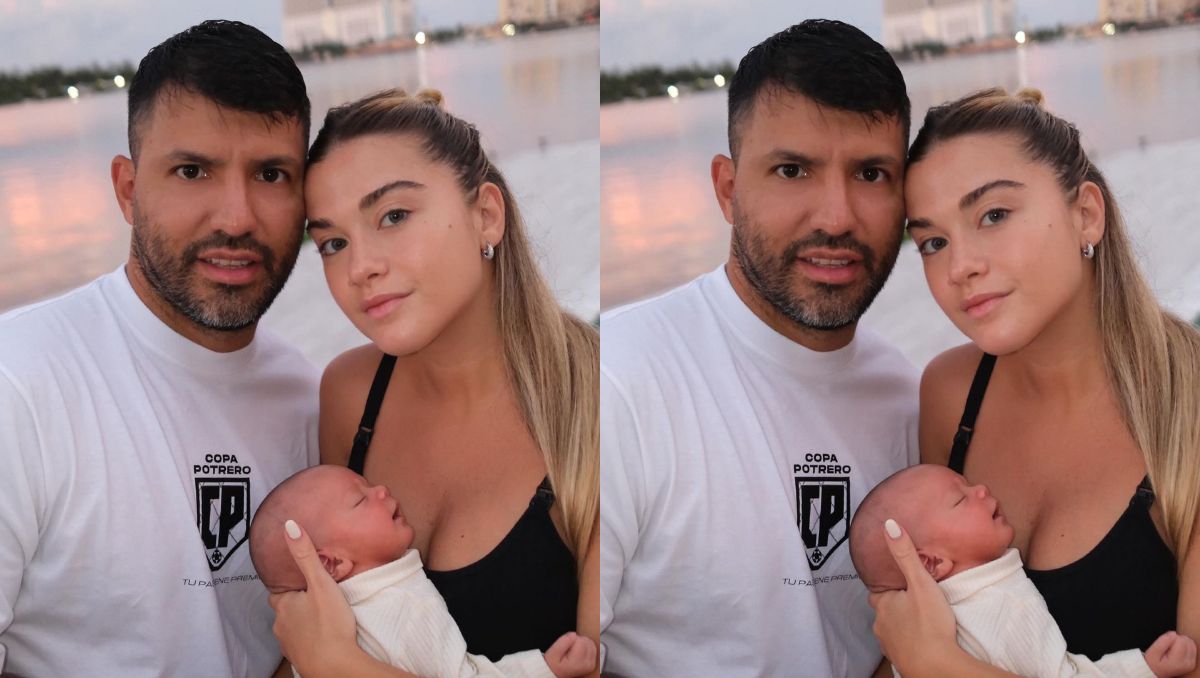 Sergio el Kun Agüero vive un hermoso momento en familia disfrutando al máximo de las primeras semanas de vida de su hija junto a Sofía Calzetti, Olivia.
