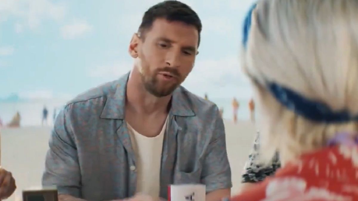 La cuenta en la red social "x", Real Time, publicó el video del comercial que muestra el momento en el que Lio se acerca a la barra a pedir una cerveza y minutos después se le ve haciendo una jugada de fútbol en la playa.