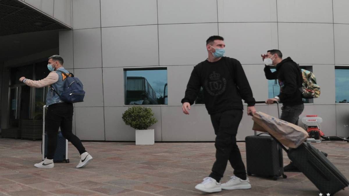 Messi arribó al aeropuerto internacional de Ezeiza, en la provincia de Buenos Aires, acompañado por los futbolistas del París Saint-Germain Leandro Paredes y Ángel Di María, tras lo que subieron al autobús de la Asociación del Fútbol Argentino (AFA) para dar inicio a la concentración con la Albiceleste.
