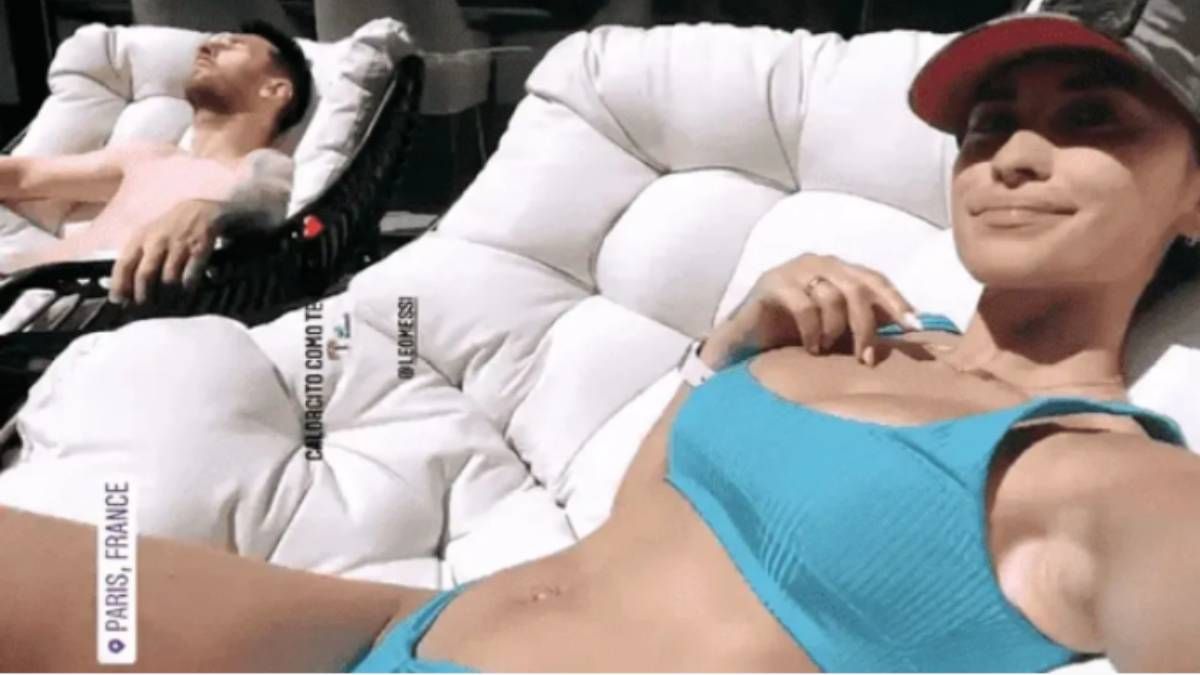 En una storie se ve a Antonela grabando y en el fondo está Messi aparentemente dormido. Ella, por su parte, escribió: “Calorcito como te quiero”.