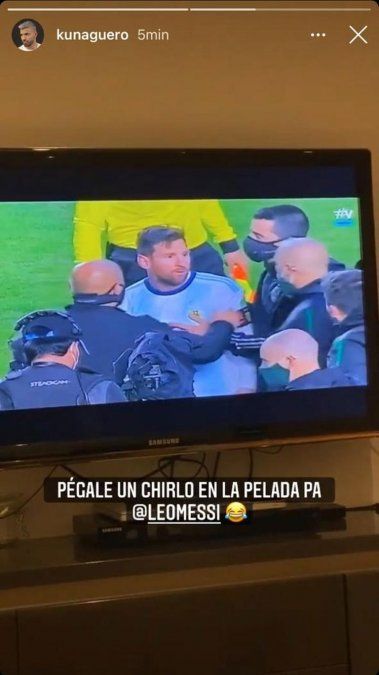 Luego del hecho, Sergio 'Kun' Agüero, muy amigo de Messi, salió a defender al '10' en sus redes sociales de una manera muy graciosa, como es su particular estilo: “Pegale un chirlo en la pelada, pa”, escribió el delantero del Manchester City en una historia de Instagram que tenía una foto del airado momento de Messi, acompañado de un emoji que expresó risa.