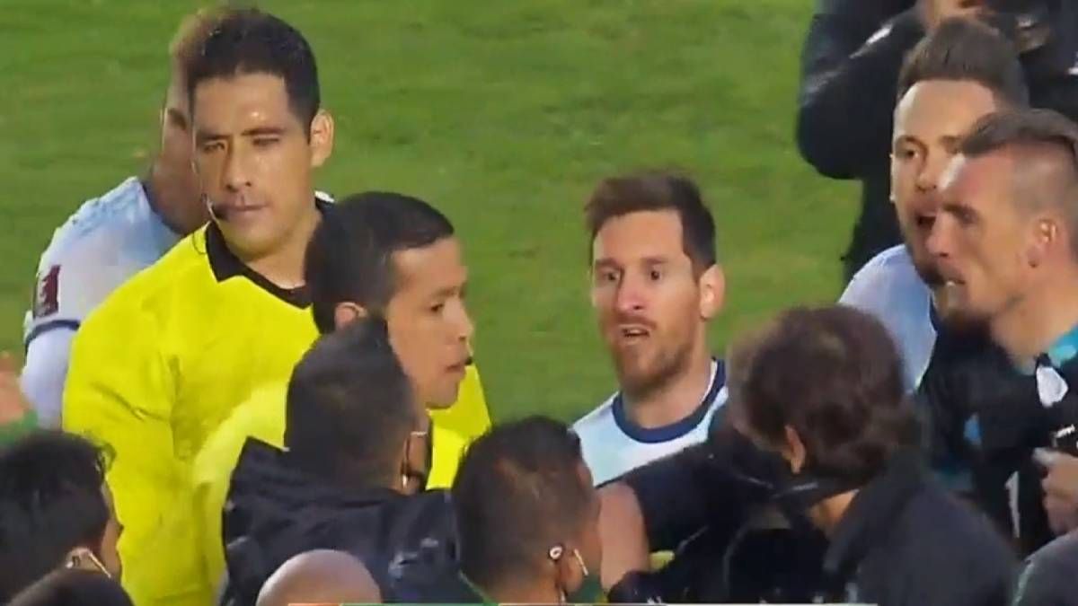 Acto seguido tuvo un cruce de palabras con Marcelo Moreno Martins, quien abordó a “La Pulga” cuando discutía con el preparador físico boliviano. Moreno, autor del gol de su selección, estuvo caliente en la previa al afirmar que quería anotarle una vez más a los argentinos, y también se le vio hablándole a Messi en el minuto de silencio previo al juego.
