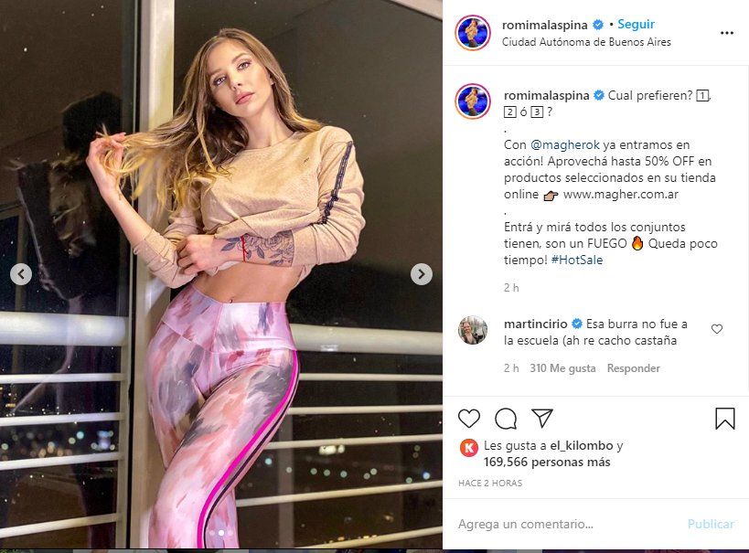 Como cada una de las publicaciones que realiza en la red social, los looks deportivos de Romina Malaspina despertaron la aprobación de sus más de dos millones de seguidores. En menos de dos horas, la publicación superó los 100.000 likes y un sinfín de comentarios.