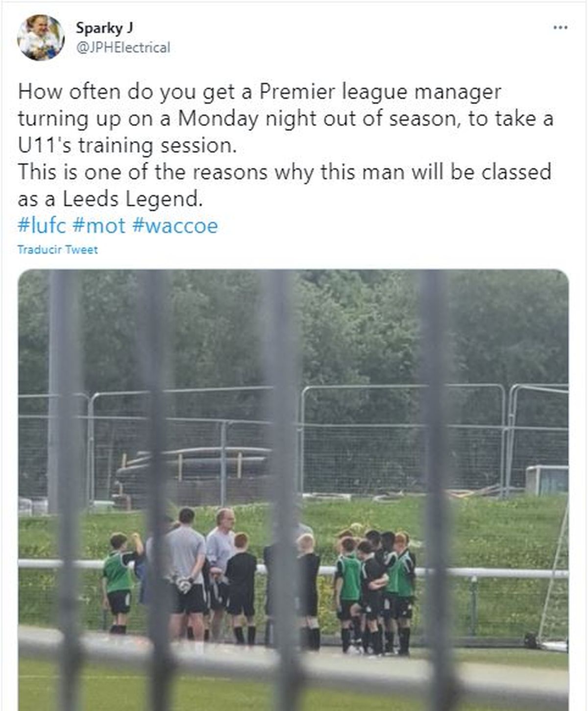 A través de la red social Twitter el usuario @JPHElectrical compartió una foto donde que se hizo viral en donde se lo puede ver a Marcelo Bielsa visitando el campo: “¿Con qué frecuencia aparece un entrenador de la Premier League un lunes fuera de temporada para dirigir una sesión de entrenamiento de U11? Esta es una de las razones por las que este hombre será clasificado como leyenda del Leeds United”.