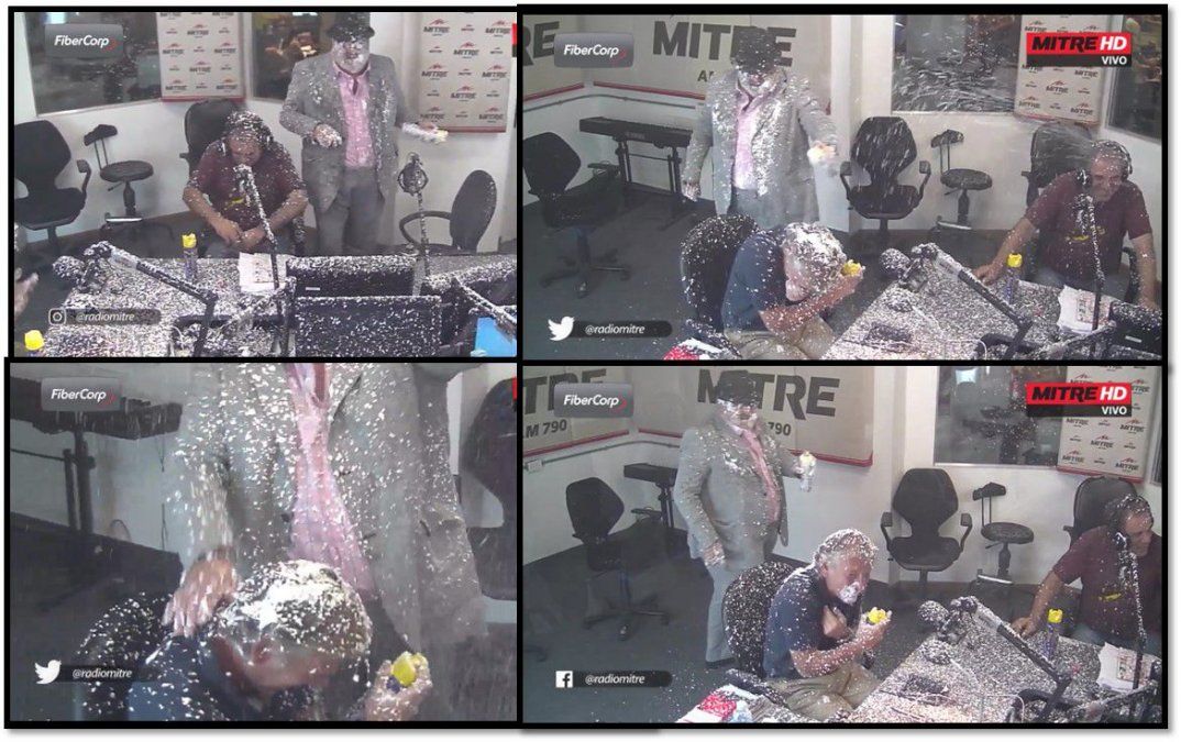 El primero que comenzó atacando fue Lanata, quien se dirigió directamente hacia donde estaba Longobardi y le vació el envase de espuma en la cabeza.