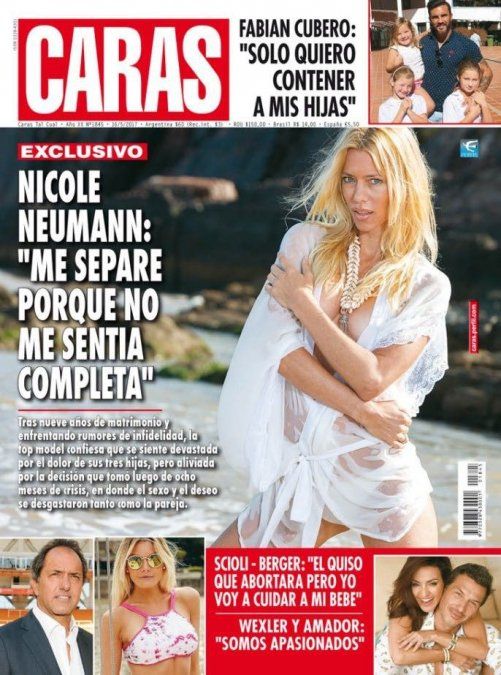 "Caras" tiene a una de las protagonistas de la semana, Nicole Neumann, que confiesa: "Me separé porque no estaba completa" (?), también está la palabra de Fabián Cubero, y hay informe sobre el escándalo de Berger y Scioli.