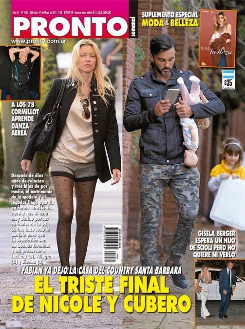 "Pronto" le dedicó la tapa a la separación de Nicole y Cubero, e hizo un apartado especial al escándalo Scioli-Berger. Además, habla de Cormillot y su baile, a los 78 años.