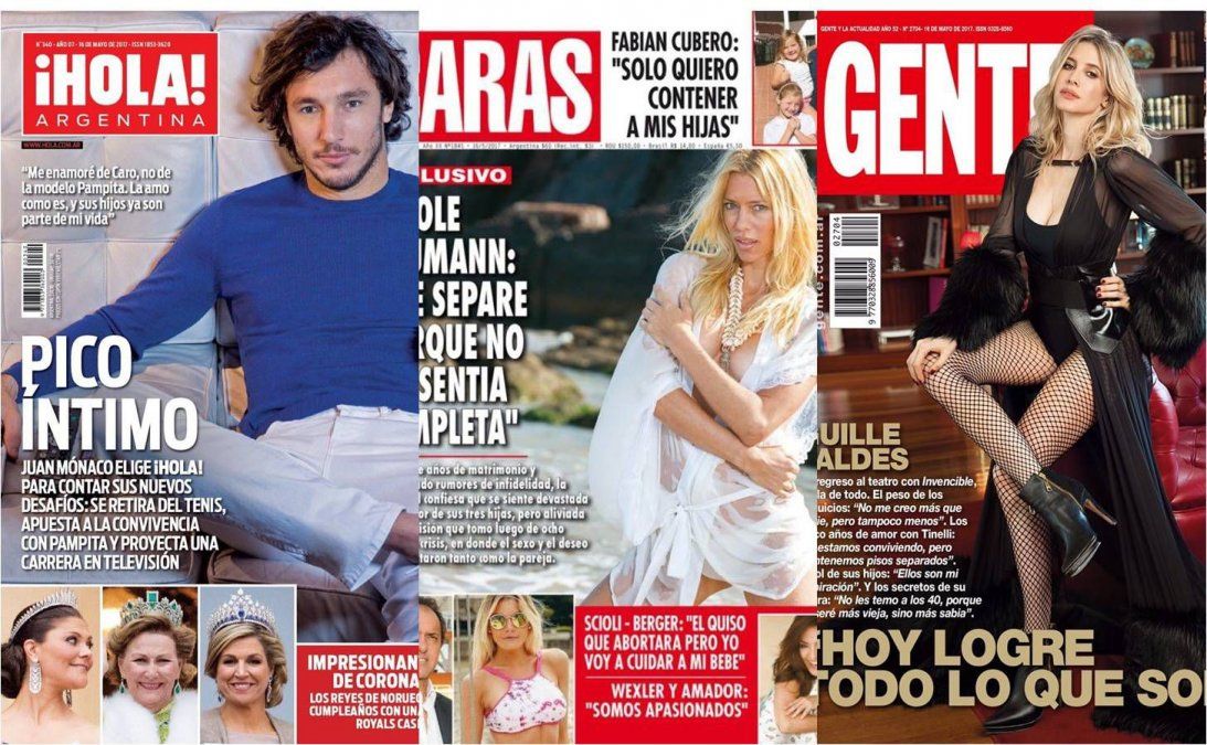 "Hola" es la más llamativa porque tiene a Juan Pico Mónaco, anunciando su retiro del tenis y eligió esa publicación, siempre dedicada a la realeza y la alta sociedad, para contarlo, y no una revista deportiva. Pico está acompañado en tapa con "El desfile de las coronas de Oslo". Todo junto y por el mismo precio.