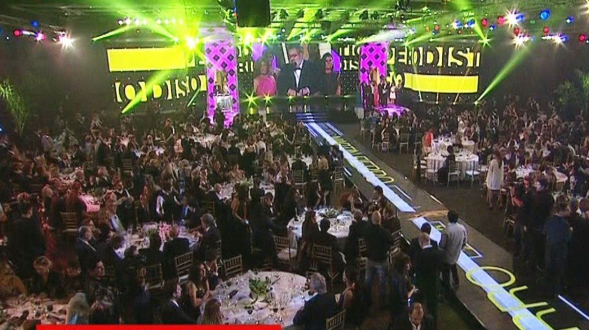 Las mesas más sencillas, aunque cueste creerlo, son las de las estrellas máximas; a saber, de izquierda a derecha, Adrián Suar con todo el elenco de "Silencio de familia": Florencia Bertotti, Julieta Díaz y Gloria Carrá; la otra, la de Mirtha Legrand con su equipo y -seguro- su productor general Nacho Viale.