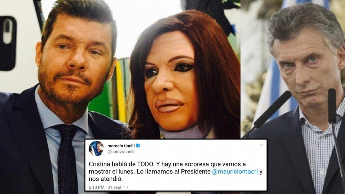 Hasta acá todo todo perfecto, para reafirmar esto a las 17.13 Marcelo Tinelli subió a su cuenta de twitter el siguiente mensaje " Cristina habló de TODO. Y hay una sorpresa que vamos a mostrar el lunes. Lo llamamos al Presidente @mauriciomacri y nos atendió".