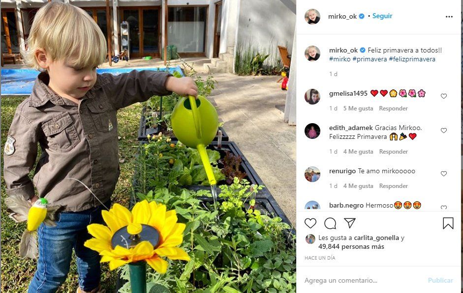 Cabe recordar, que esta afinidad con la huerta por parte de Marley ( Y obviamente de Mirko) comenzó en medio de la cuarentena, como una de las actividades elegidas por Alejandro para mantener activo a su pequeño hijo durante el confinamiento.