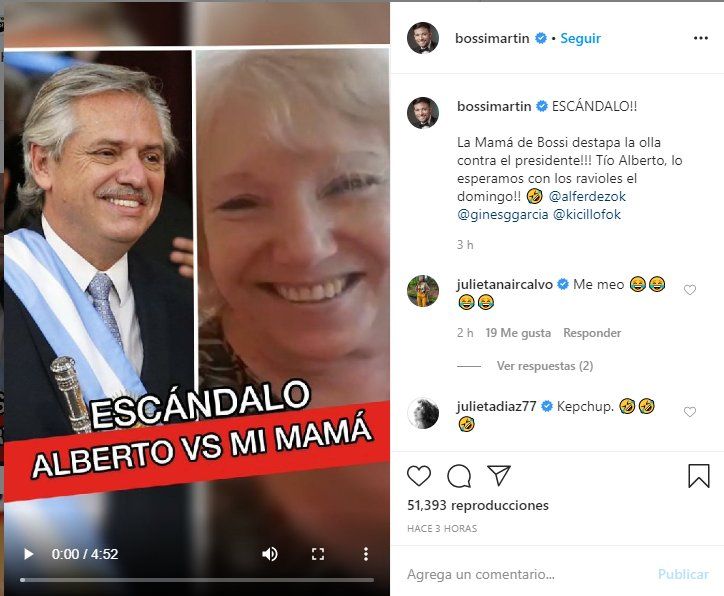Martín Bossi le envío un divertido video a Alberto Fernández