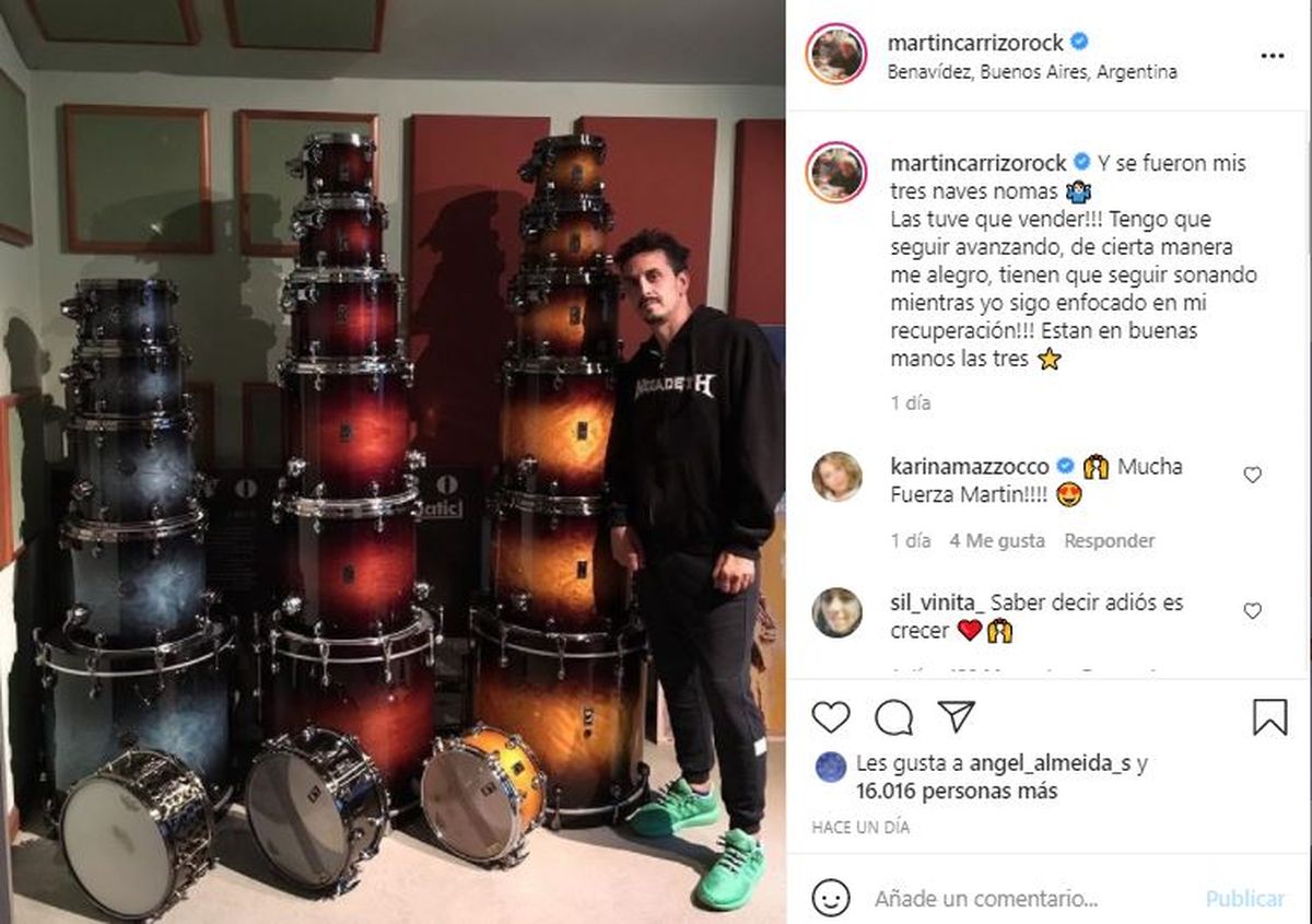 Acerca del comprador de su batería, el músico Martín Carrizo explicó que "Están en buenas manos las tres". Hace cuatro años, el baterista Martín Carrizo fue diagnosticado con ELA y desde entonces ha contado con el apoyo de su familia para tratar la enfermedad degenerativa.