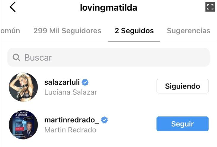 Resulta que en la cuenta Instagram de Matilda, la hija de Luciana Salazar y Martín Redrado, que cuenta actualmente con más de 200 mil seguidores, se puede ver un detalle: Matilda solo sigue a dos personas, que son su madre Luli, y su padre Martín Redrado.