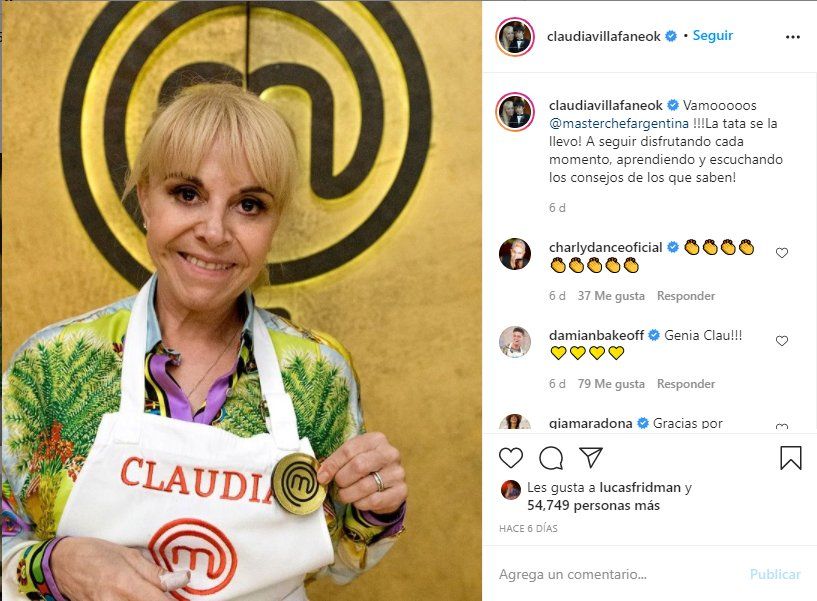 Se pudo conocer a través de las producción de Masterchef Celebrity Argentina, que Claudia Villafañe no participará en las próximas grabaciones del popular programa. Su última grabación fue anoche, y hoy cuando estaba por irse a grabar se enteró de la muerte de Diego Maradona, por lo que desde Telefe le permitieron tomarse unos días para acompañar a sus hijas en este terrible momento.