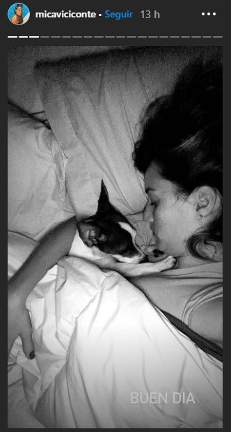 A través de sus redes sociales, la panelista de El Show del Problema mostró como se despierta en la cama con su perrita. “Buen día”, escribió Mica Viciconte junto a la foto de sus historias de Instagram.
