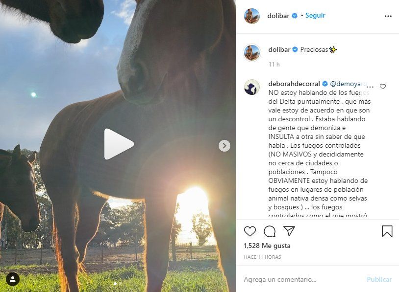 Fue tal el revuelo que Dolores Barreiro sintió la necesidad de efectuar un descargo en las mismas redes sociales donde la estaban criticando. “La intención es puramente ecológica, es lograr que una materia seca y muerta deje el lugar, la luz del sol y el agua de lluvia para que un nuevo pasto y ecosistema aprovechen recursos naturales mucho más ricos” escribió.