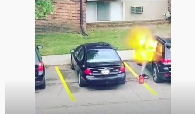 En el video se ve a la mujer con un encendedor tipo mechero iniciando el fuego con una torpeza incalculable, ya que se paró delante de la ventana y encendió la mecha. Las consecuencias de su venganza fueron peligrosísimas: explotó en su cara y la arrojó al suelo.
