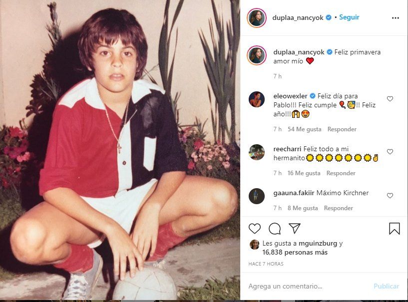 A través de su cuenta en la red social Instagram la actriz Nancy Dupláa posteó una foto de su esposo Pablo Echarri de cuando era un adolescente, en cuclillas, con una pelota blanca y vestido como lo hacían los futbolistas en las primeras décadas del fútbol. Fanático del Club Independiente, siempre el actorPablo Echarri manifestó su pasión por el fútbol. En alguna oportunidad detalló que después del colegio, Echarri jugaba muchas horas hasta que se hacía de noche y debía volver a su casa.