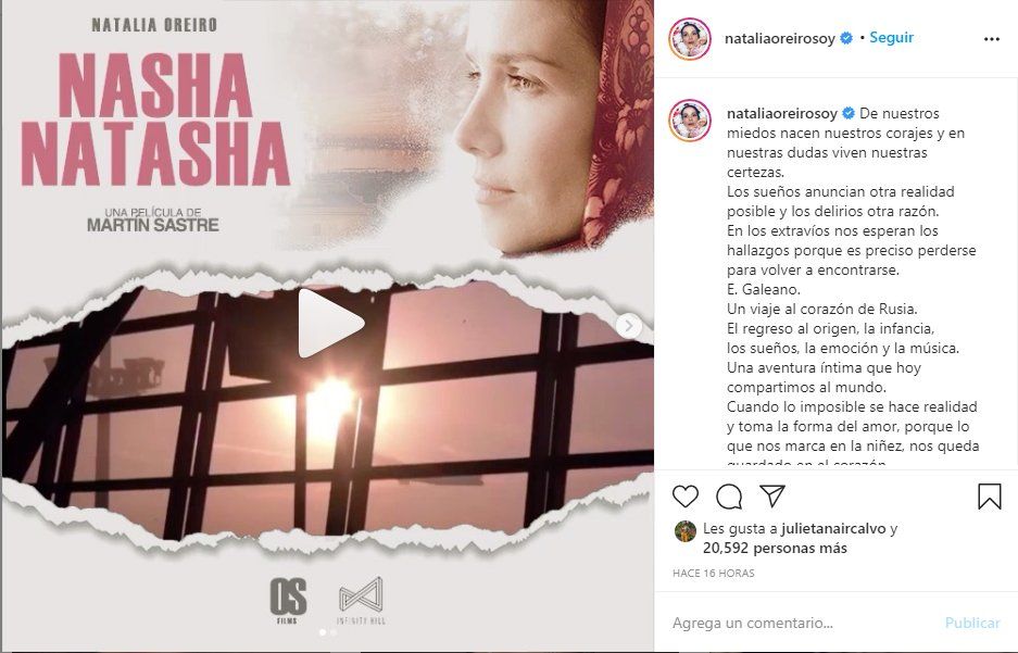 Hoy se estrena a través de Netflix, Nasha Natasha, el documental sobre el inesperado éxito de Natalia Oreiro en Rusia. Muy feliz con el lanzamiento de la película, la actriz publicó un emotivo mensaje en su Instagram.