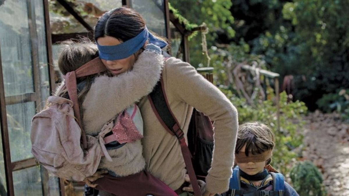 Bird Box: a ciegas, narra la historia de una mujer llamada Malorie y dos niños que navegan río abajo con los ojos vendados para llegar a un refugio, después de que unas fuerzas extrañas invadieran, y se encuentren provocando suicidios masivos alrededor del mundo, generando caos y disminuyendo la población.