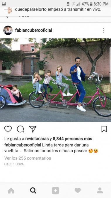 Él se dedicó a pasear con sus hijas en bicicleta y se tomó una foto que subió a su red de instagram y la compartió con los miles de seguidores. Cubero manifestó su debilidad por sus hijas y por tratar de pasar el mayor tiempo posible con ellas.