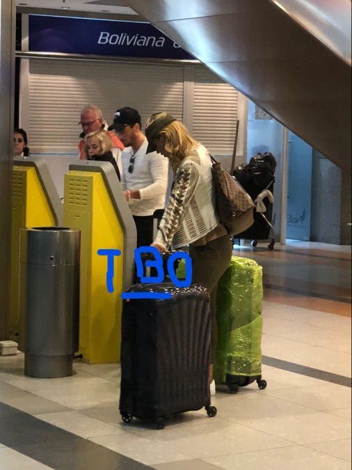 La modelo viajó esta noche de jueves y tuvo la mala suerte de encontrarse con Marina Calabró, que también viajaba, y fue quien tomó las imágenes que publicamos.