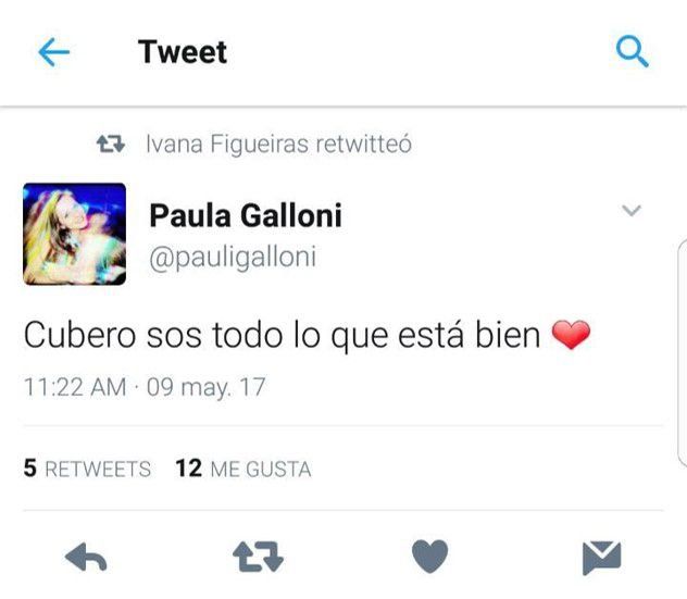 Pero la vida moderna llega a tener muchos mensajes en las redes sociales. Ivana Figueiras, la novia de Tomás Guarracino, amigo personal de Cubero, estuvo haciendo RT de algunos mensajes en twitter como el que decía "Cubero sos todo lo que está bien".