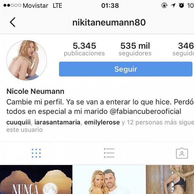 Pero en la últimas horas ella cambió otra vez su bio y puso una frase muy llamativa que abre nuevas especulaciones sobre el tema "Cambié mi perfil. Ya se van a enterar lo que hice. Perdón a todos en especial a mi marido @fabiancuberooficial".