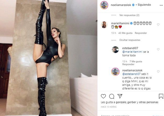 Noelia Marzol salió en defensa de su amiga Marianela "Mimi" Alvarado en Instagram, ante la ofensa de un seguidor. En una fotografía donde la modelo y bailarina mostró sus piernas, su amiga le hizo un halago y uno de los seguidores aprovechó el "minuto de fama".