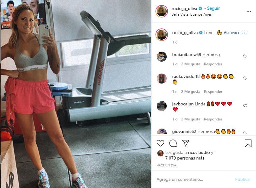 De hecho el pasado lunes, Rocio Oliva compartió un video para motivar a sus seguidores en redes sociales: “Estamos entrenando, recién terminé de hacer la cinta, unos diez minutos pero a velocidad 14. Así que estamos a full, aunque sea lunes. A entrenar, da fiaca, pero finalmente se puede”.