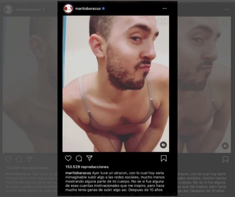 Cabe destacar que minutos después de la publicación que hizo Baracus, ante la denuncia de los usuarios, la red social decidió eliminar el video que alcanzó más de 200 mil reproducciones. “ Bueno, dos segundos duró la publicación que tiré. Una vez que me abro al mundo y me muestro como soy, ¿a vos te parece? Instagram ponete las pilas”, se quejó el youtuber.