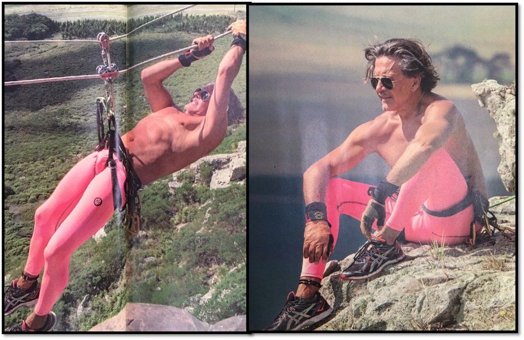 Pero lo que no tiene desperdicio son las calzas rosas que se puso para su sesión de deportes de riesgo en las sierras.