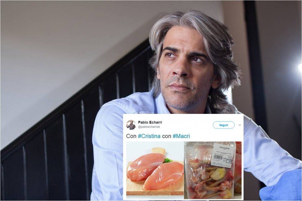 Echarri comparó en Twitter las gestiones de Cristina y Macri con dos fotos de presas de pollo
