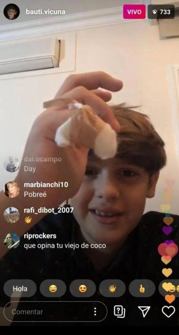 Bautista está muy activo en las redes sociales, pese a su corta edad. Hace unos días, también durante el festejo del cumpleaños de Beltrán, realizó un live en casa de su padre, donde aparecía La China Suárez, pareja actual de Vicuña. En la transmisión, se vivió un momento incomodo entre la pareja que protagonizaron una pequeña discusión. “A ver, esto es así”, dijo Vicuña, tal vez un tanto contundente a lo que la ex Casi Ángeles respondió: “¿Qué mi amor? Está toda húmeda la leña o le tiraste vos el coso”.