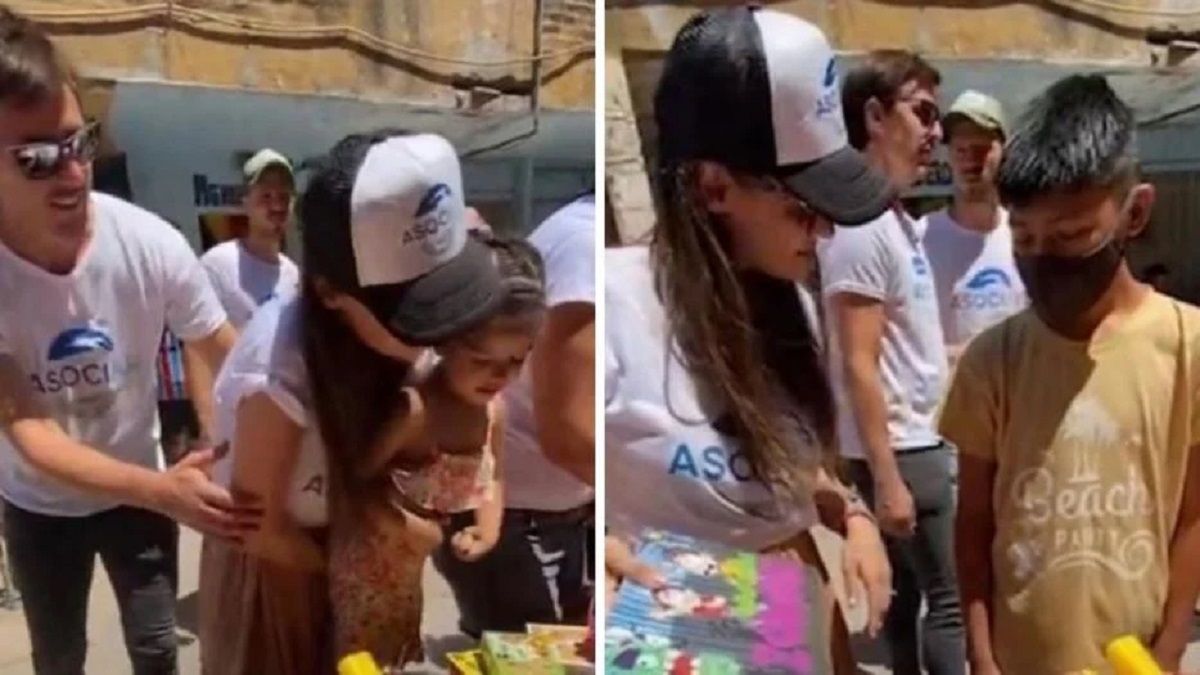La conductora Pampita y su pareja, el político Roberto García Moritán, repartieron juguetes a los niños de la Villa 31, en el marco de la Navidad.
