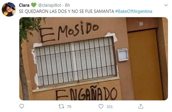 Al momento de anunciar quienes seguían en el concurso, Paula les pidió a los cuatro concursantes que pasaran al frente. La primera en ser salvada en la noche fue Agustina, quien fue seguida por Damián. Así, Samanta y Agus habían quedado en la cuerda floja, pero: "Creo que me equivoqué", dijo Chaves, y continuó: "Quienes continúan en la carpa de Bake Off son... Agus y Samanta".
