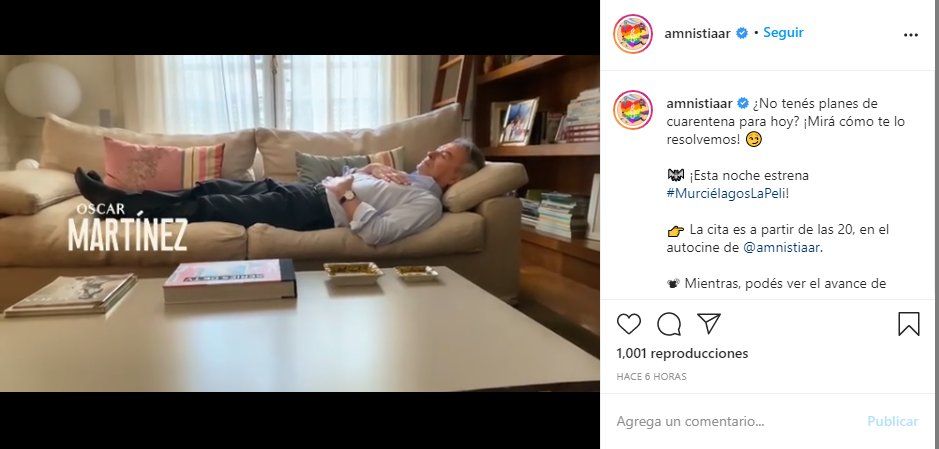 El público podrá acceder al estreno de Murciélagos haciendo click en www.amnistia.org.ar/autocine . El valor de la entrada virtual es a voluntad. El dinero recaudado será donado en su totalidad a Banco de Alimentos a través de Amnistía internacional. Con las donaciones recolectadas, Banco de Alimentos continuará con su misión -la de “ayudar al que sufre hambre”- distribuyendo entre más de 1190 organizaciones sociales alimentos que recibe en donación por parte de empresas de la industria, supermercados y productores agropecuarios.