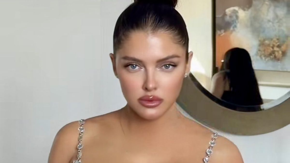 La creadora de contenido eligió un vestido largo, ajustado al cuerpo, confeccionado íntegramente con una trama de piedras y apliques brillantes, que dejaban entrever la piel y generaban un efecto joya impactante. El diseño, de breteles finos y escote pronunciado, realzó su figura y combinó sensualidad con elegancia, logrando un equilibrio perfecto para una noche de gala.