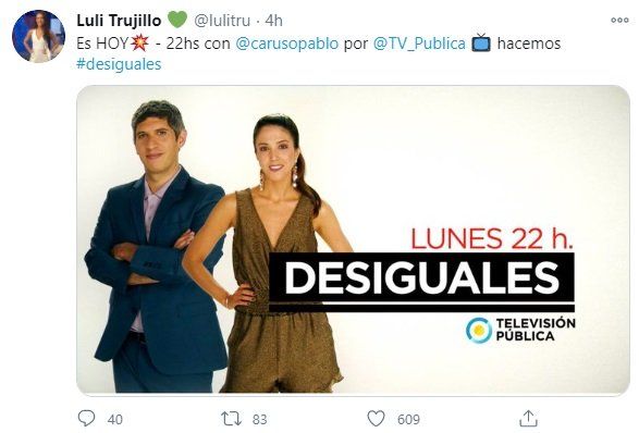Luli Trujillo dijo que: "La idea de “Desiguales” es que se puedan tender puentes que unan dos ideas, que no tienen que acercarse sí o sí. Que la mal llamada grieta y los distanciamientos en cuanto a pensamiento son lógicos, son válidos, siempre existieron, pero la idea es conectar aunque no tengan que ponerse de acuerdo en todo. Sí buscar puntos en común para que coordinemos como sociedad, como argentinos, para estar mejor", comentó sobre el programa.