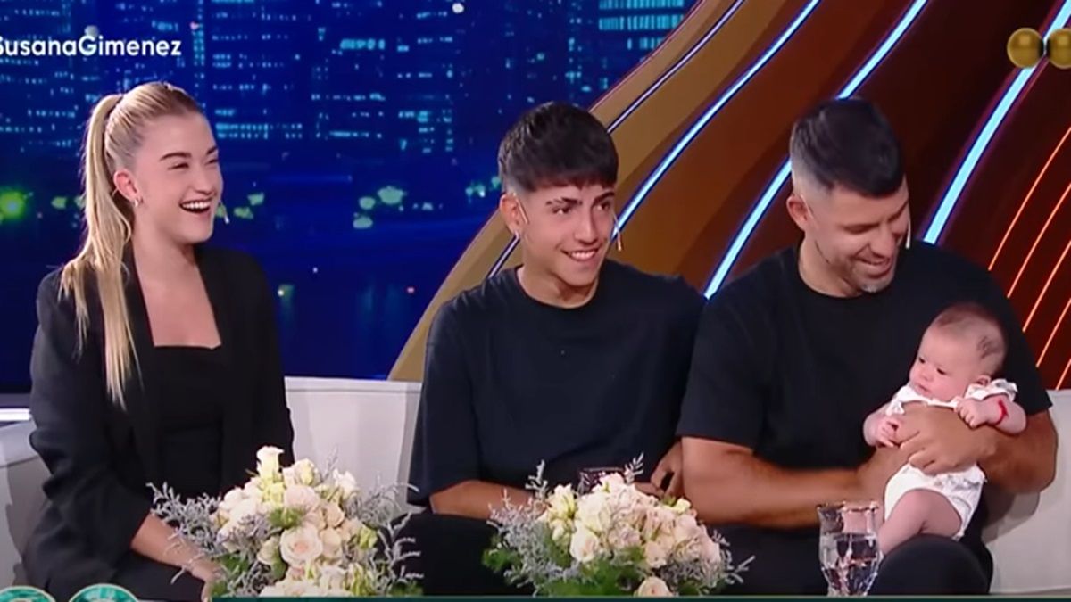 El Kun Agüero dio de qué hablar este domingo en su visita al ciclo de Susana Giménez en Telefe. El exfutbolista, estuvo en el living de la diva conversando de todo un poco, pero sin duda, el momento más emocionante fue cuando presentó a su hija Olivia junto a Benjamín, su primer hijo y su pareja, Sofía Calzetti.