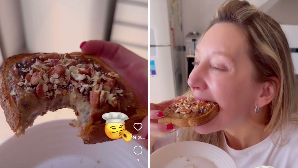 En esta ocasión, la hermana de Luisana Lopilato preparó unas "Banana toast" y explicó que esta versión que muestra es a su manera: "una opción de tostada dulce tipo tortita y muy saciante".