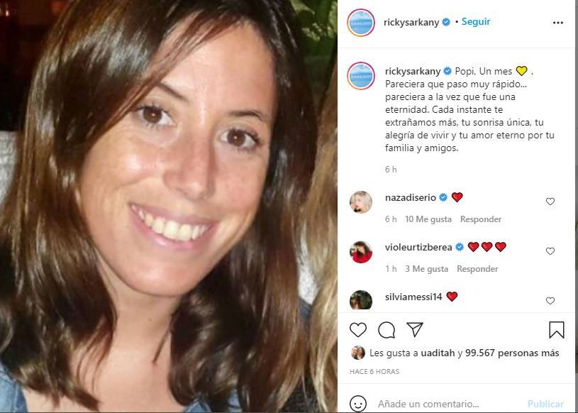 Hoy, a exactamente un mes de la muerte de Sofía, Ricky Sarkany le escribió un conmovedor mensaje para recordarla. Sarkany publicó el mensaje en su cuenta de la red social Instagram. El diseñador escribió: “Popi, un mes. Pareciera que paso muy rápido... pareciera a la vez que fue una eternidad. Cada instante te extrañamos más, tu sonrisa única, tu alegría de vivir y tu amor eterno por tu familia y amigos”, junto al epígrafe se compartió una foto de Sofía sonriendo.