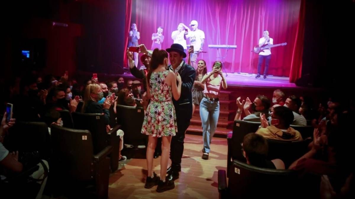 En medio de una función en el Teatro-Cine Olympia de Mar del Plata, al novia del humorista, Jennifer, terminó totalmente sorprendida.