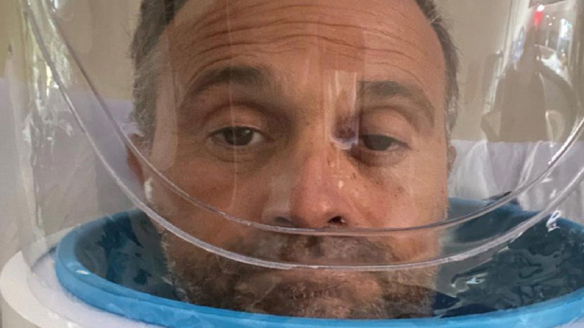 Desde hace unos días el estado de salud de Sergio Lapegüe se ha venido agravando producto del coronavirus, incluso fue llevado al área de terapia intensiva del Sanatorio Juncal de Temperley. Recordemos que el virus afecta directamente a los pulmones, por lo que uno de los síntomas más graves es la falta de respiración. Ante esto, el conductor de noticias usó un casco "helmet" y compartió este "tratamiento" a través de sus redes.
