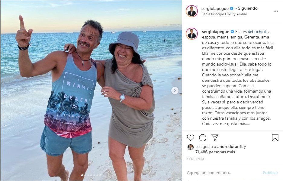 A través de su cuenta en la red social Instagram, el periodista Sergio Lapegüe compartió su diario de viaje con sus fanáticos. Desde Punta Cana, compartió varias imagenes de como la estaba pasando durante sus vacaciones. Sin imaginar que al volver tendría que ser internado: "Estas son algunas postales de tal vez, las mejores vacaciones que pasamos con mi familia y nuestros amigos. Ahí disfrutamos del sol y del mar. De las charlas interminables. De las risas cómplices. De la pirámide imperfecta, pero cada año más alta. De nuestras locuras sanas. De dormir sin límite de tiempo. De cada día hacer nuestro entrenamiento", escribió Lapegüe.