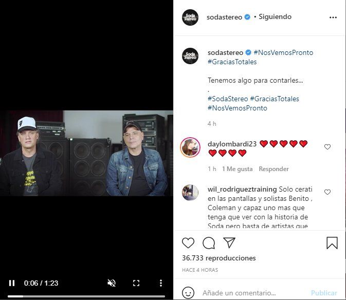 A través de cuenta oficial en Instagram de Soda Stereo el bajista Zeta Bosio y el baterista Charly Alberti, quienes además son los promotores de los recitales, hicieron público el anuncio. “Al igual que ustedes, tenemos muchísimas ganas de que estos shows se pueda hacer lo antes posible y de volver a disfrutar, porque la gente había empezado increíblemente bien. (...) Esto es nuestro sueño y tenemos todo listo para que se haga”, se puede escuchar en el video.